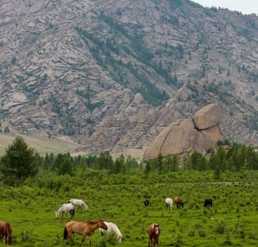 Terelj National Park is a scenic area near Ulaanbaatar, famous for its rock formations, rivers, and open steppe landscapes. Aryabal Monastery is a Buddhist temple located within Terelj, known for its peaceful atmosphere, meditation practices, and panoramic views of the surrounding mountains. Enjoy nature photography and scenic viewpoints