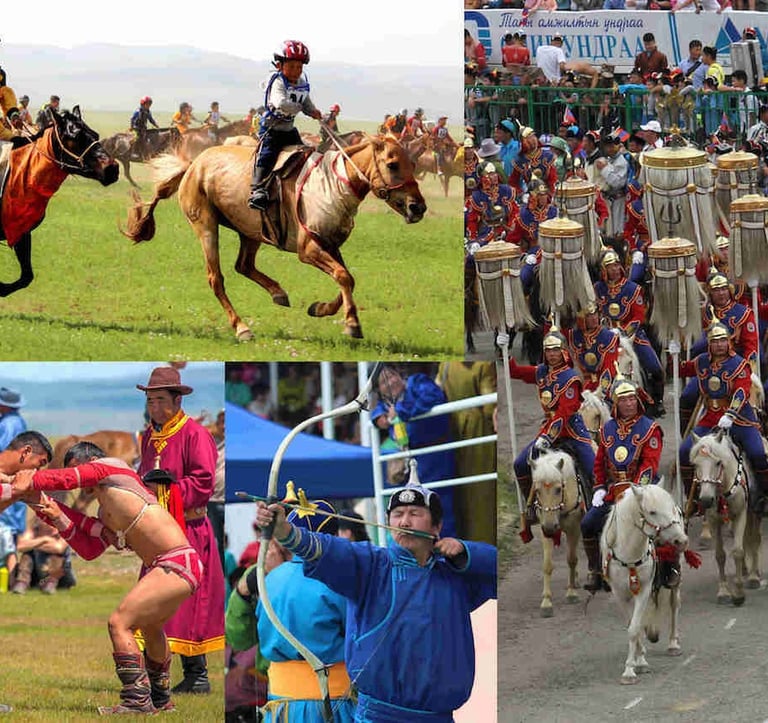 Naadam Festival – Mongolia’s Traditional Festival Category: Cultural Tourism / Festival / Traditional Sports Overview The Naadam Festival is Mongolia’s largest and most iconic celebration, held every year from July 11–13. Known as the “Three Manly Games,” Naadam showcases Mongolia’s rich nomadic culture and heritage through wrestling, horse racing, and archery. The festival is celebrated nationwide, with the biggest events taking place in Ulaanbaatar, the capital. Main Events & Highlights Wrestling (Bökh) Mongolia’s traditional wrestling is the highlight of the festival. Wrestlers wear traditional attire and compete in elimination rounds, demonstrating strength and skill. Horse Racing Long-distance races for horses aged 2–5 years. Jockeys are often children, reflecting nomadic traditions. Races can stretch over 15–30 km, depending on the region. Archery Both men and women participate in traditional Mongolian archery. Competitors use wooden bows and arrows, often in ceremonial attire. Cultural Performances & Celebrations Folk dances, singing, and musical performances accompany the sports events. Traditional food, clothing, and crafts are showcased. Travel Tips Best Visiting Time: July 11–13, during the festival. Accommodation: Book in advance in Ulaanbaatar or nearby ger camps. Tips: Arrive early for the wrestling finals and horse racing; local guides enhance the experience.